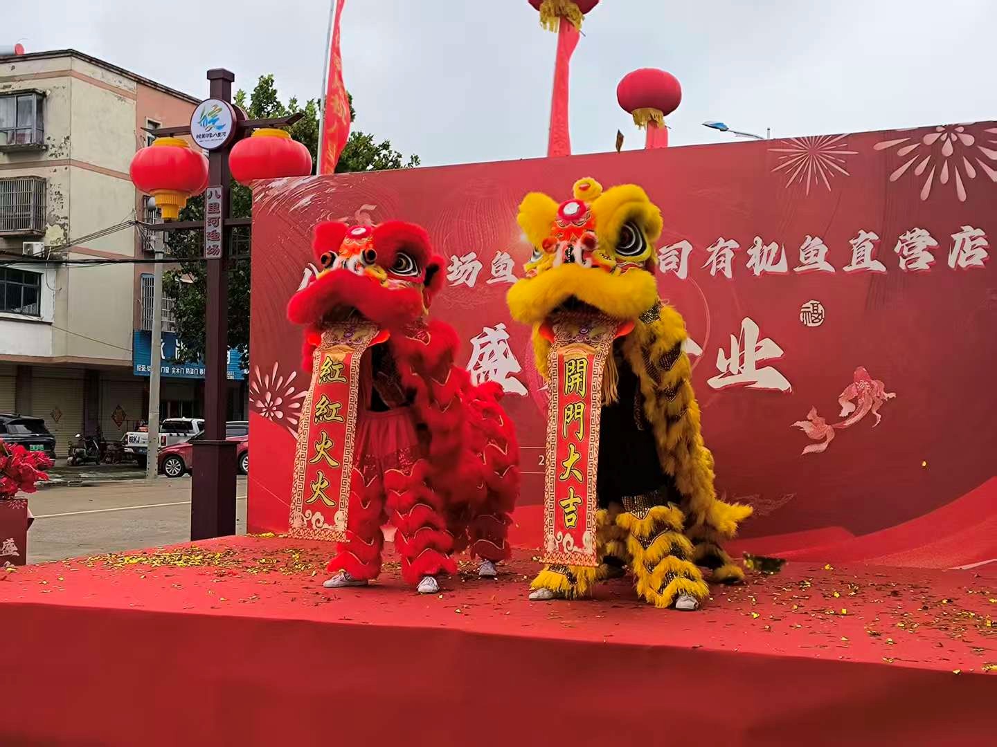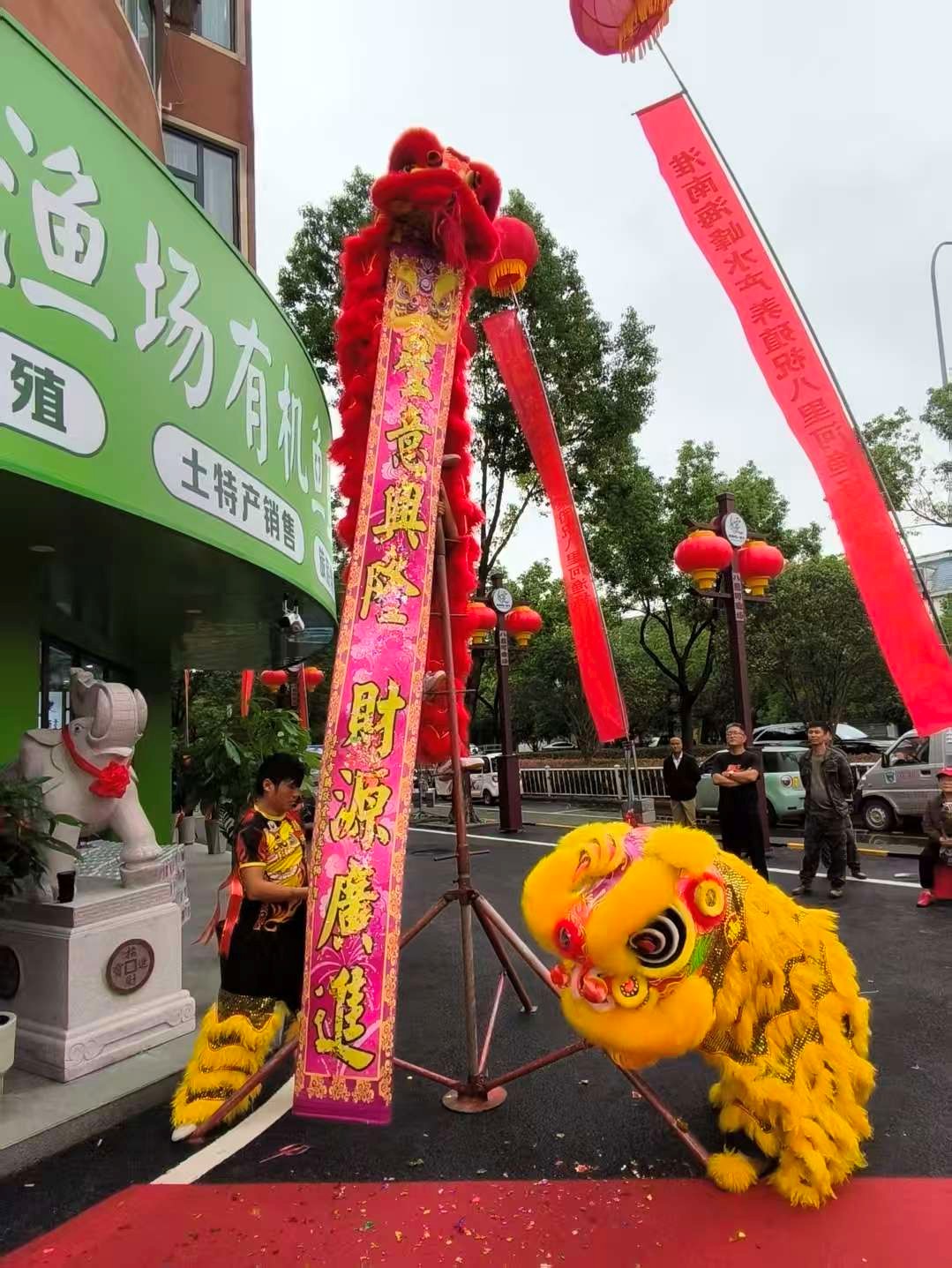 剪彩的余温未散,激昂的锣鼓声便骤然响起,将气氛推向另一个高潮 —— 专业舞狮团队裹挟着热浪登场了。一红一黄两头醒狮跃上舞台,红狮灵动如跃动的火焰,黄狮活泼似初升的朝阳,随着鼓点腾跃、摆尾、眨眼,把 “狮” 的憨态与活力演得活灵活现,惹得观众不停拍手叫好,还有人忍不住喊出 “好!”舞台上的红黄双狮则各自衔来卷轴,红狮衔着 “红红火火”,黄狮衔着 “开门大吉”,仿佛把最真挚的祝福都送到了直营店门前。